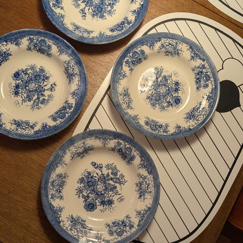 4dype tallerkener diameter 22 cm. Hel og fin glasur . Noe slitt under.