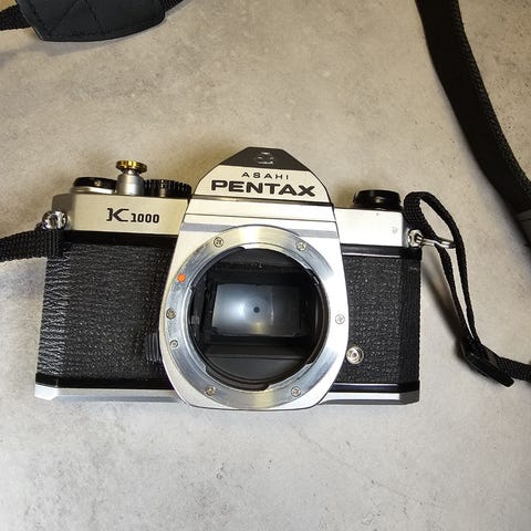 Pentax ME Super med futteral og to objektiver, blitz og instruksjonsbok. Ikke digitalt.