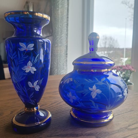 To tyske koboltblå krukker med lokk. Limburg.