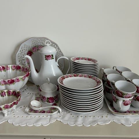 200 kr pr kuvert/sett av skål, kopp og asjett. Eller kr 1000 for alt.