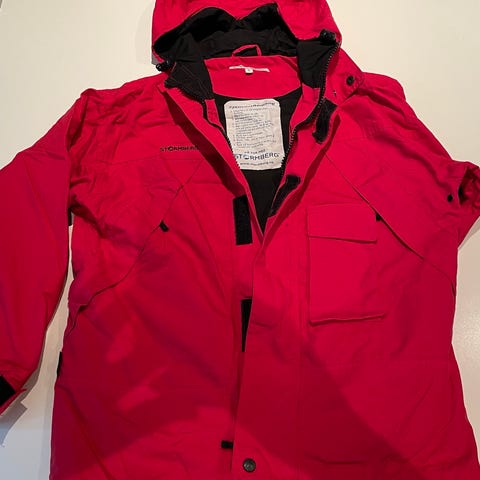 Jakken er ikke brukt,men har vasket den. Det er en unisex modell. Litt stor i størrelsen. Anorakkaktig stoff. Modellen heter Valdres jacket.