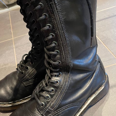 31 cm høye Dr. Martens med snøring og to glidelåser. Sort. Str.40. Pent brukt.
