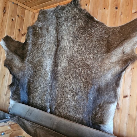 Flott garvet hjorteskinn 185 langt og 188 på det bredeste.