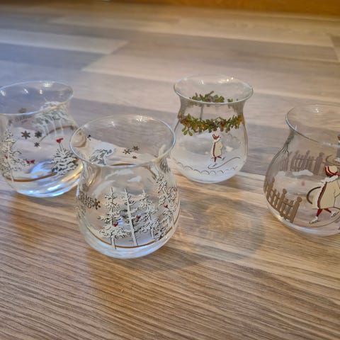Hjertelysestaker i krystall fra Holmegaard. To er helt perfekte. Tre er limt, men ser like fine ut. Se bilder.
