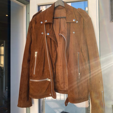 Semsket skinnjakke fra Samsøe Samsøe i størrelse Large. Brukt kun 2 ganger. Nypris 4900,-