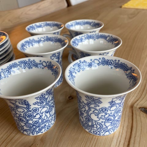 De er 9,5 cm i høyden og 11 cm i diam. oppe . Som nye