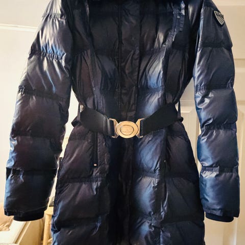 Lett kåpe med en blank overflate. Nett og klassisk passform som passer til hverdag og fest. Den har en høy krave som kan lukkes igjen med glidelås. Kåpen er pent brukt.