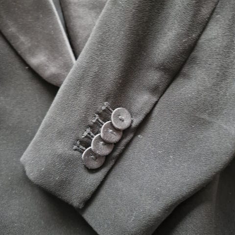 Ny svart blazer fra H&M i str. L. Blazeren er liten i str. (Trang rundt armene og ryggen). Kan lukkes igjen. Aldri brukt.