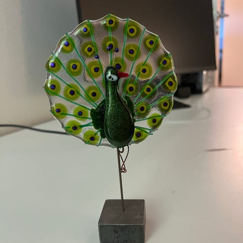 Glass skulptur til telys. Den er laget av glasskunstneren Terese Holmberg, Sverige.