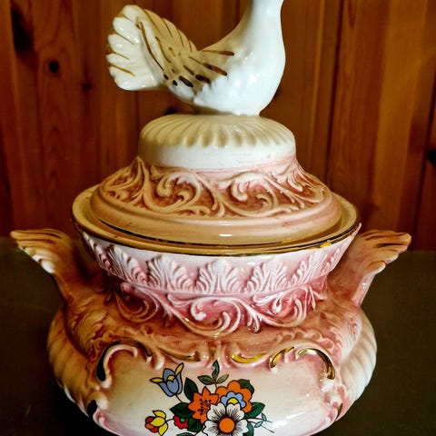 Terrinen har ingen nag, men har krakkeleringer. Se bildene.