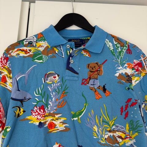 Ralph Lauren Polo skjorte i størrelse L med flerfarget rutemønster. Skjorten har lang erme og er laget for menn. Den har klassisk krage og knappelukking foran. Materialet er ikke spesifisert, men designet er preget av Ralph Laurens karakteristiske stil.