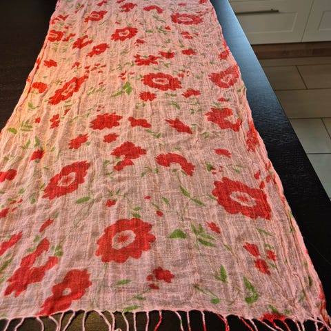 1 skjerf i dus rosa/aprikosfarge - kr 50,-