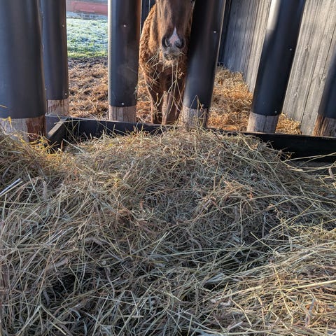 Enga består av 80% timotei og 20% engsvingel og er veldig bra hestefôr av god kvalitet.