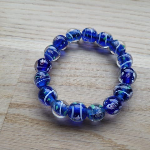 Håndlaget armbånd i glass med skjønne farger.