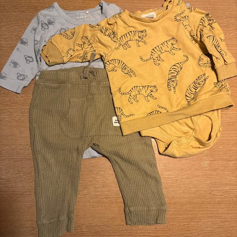 Selger masse pene klær til gutt. De meste er som nytt eller veldig pent skikk brukt. Body, bodyskjorte, skjorte, bukser, penbukse, omloppbody, heldress, sokker, strumpebukse, sokker, pysj. Merker som Newbie, Lindex, HM, Kaks, maxomorra.