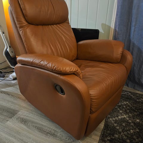 Hjellegjerde Stressless Lenestol i lys brunt skinn med Fotskammel