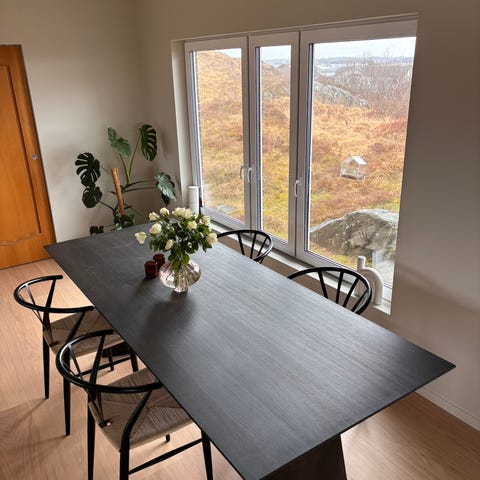 Pent og lite brukt uten riper og flekker, fantastisk solid og enkelt å holde rent. Selges med tungt hjerte da vi må ha større bord og dette ikke blir brukt.
