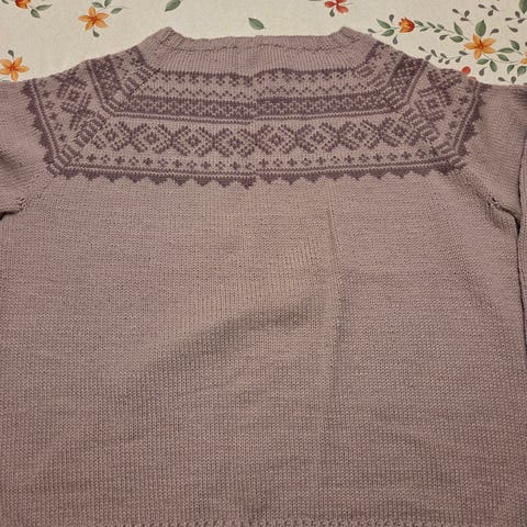 Håndstrikket genser str L- XL selges. Blandingsgarn 60 % ull. Ingen huller eller flekker.
