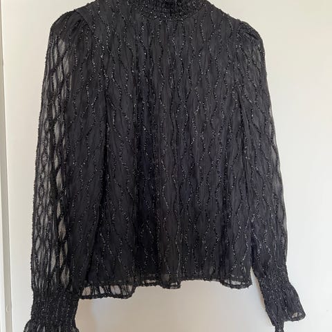 Superfin klassisk bluse som er litt lenger bak enn foran. Blusen er aldri brukt, og er størrelse 38. Materiale: 100% polyester. Jeg sender stort sett alltid første virkedag etter mottatt penger for frakt :)