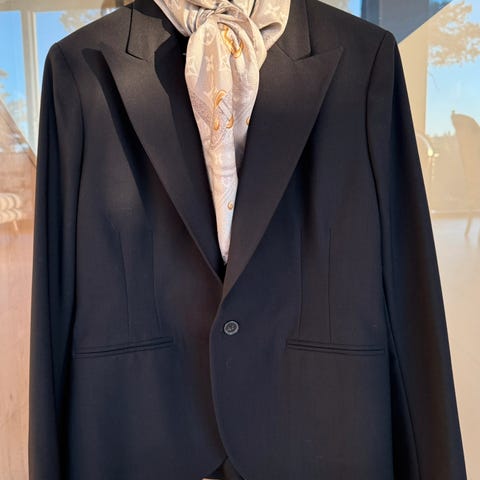 Elegant mørkblå blazer i tynn ull fra Ralph Lauren.