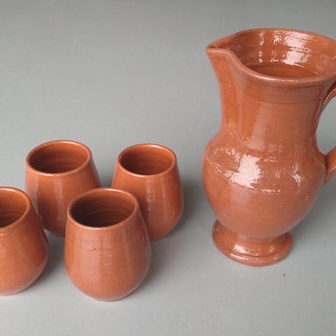 Mugge og 3 stettglass i keramikk
