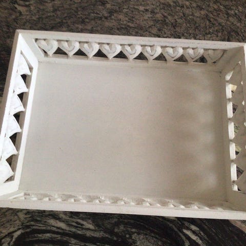 Pent og lite brukt stort hvitt lysfat i tre m/speil selges kr. 300.-