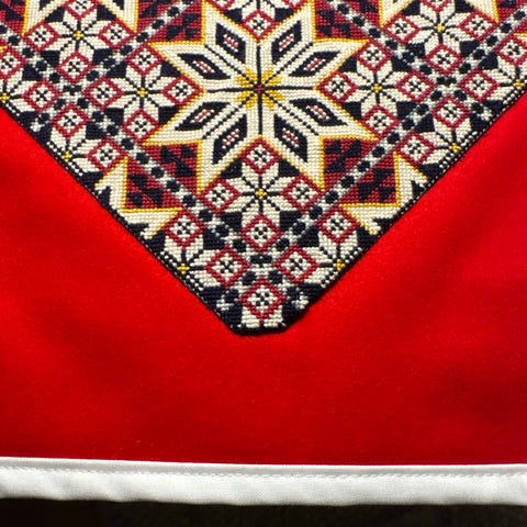 Bringeduken har lomme på baksiden til mobil etc.