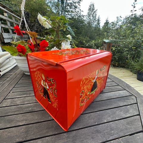 Kanne - Tranboks fra OLUF HOLM, AALESUND. Ca 1950.