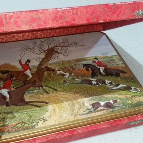 Antikk kjeksboks fra Huntley & Palmers.