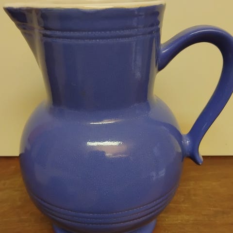 Nydelig kanne m/lokk i blått og hvitt