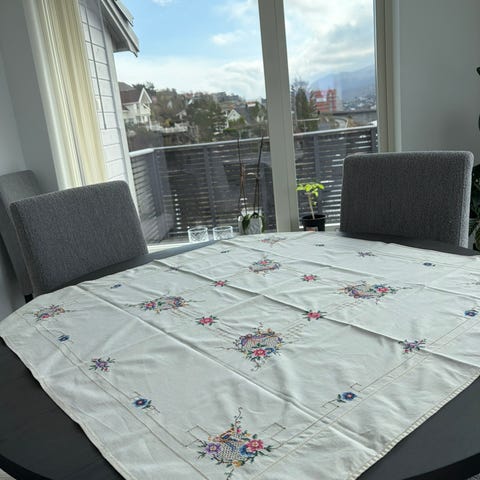 Nydelig liten duk i lindamask - håndbrodert. Se bildene!