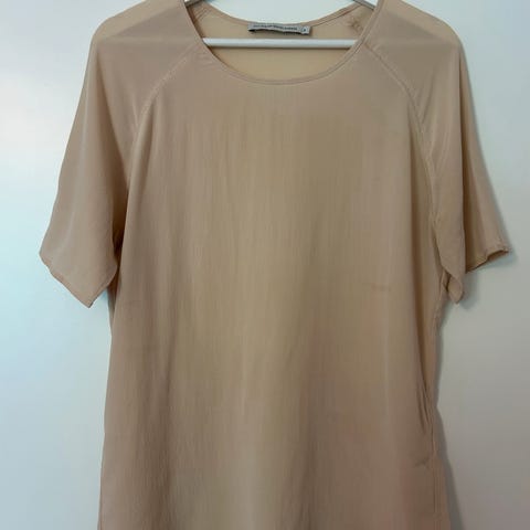 Selger denne nydelige silkeblusen kjøpt i vintagebutikk. Superfin pudderfarge. Svært pent og lite brukt. Fine detaljer. Selges fordi den brukes for skjelden. (Passer dårlig kombinert med liten baby på armen) Passer en smal og medium. Løs og elegant passform. Sender mot porto. Pris er satt. :)