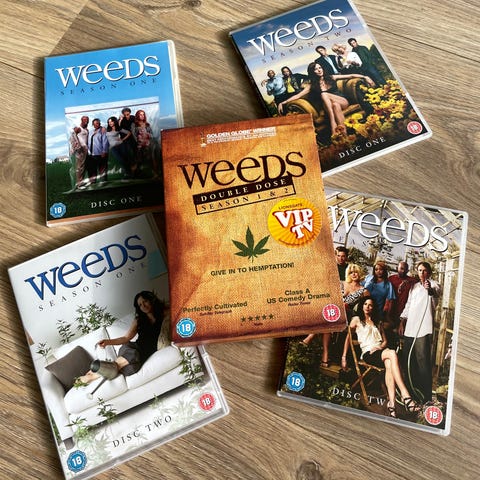 Engelsk utgave: Weeds Season One. I topp stand. Kommer med ekstra beskyttelsescover i papp.