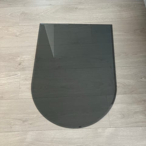 Ikke brukt glassplate til vedovn. Åpning 43x16 cm.