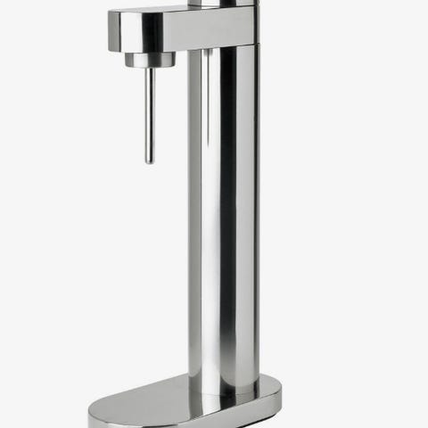 Drikkedispenseren har en ramme av rustfritt stål og en gjennomsiktig plastbeholder som gjør den holdbar og enkel å rengjøre.