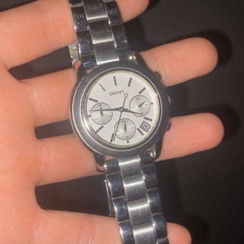 Stilig, nesten ubrukt DKNY herreklokke (NY-1149) selges rimelig. Den fungerer fint, men trenger nytt batteri.