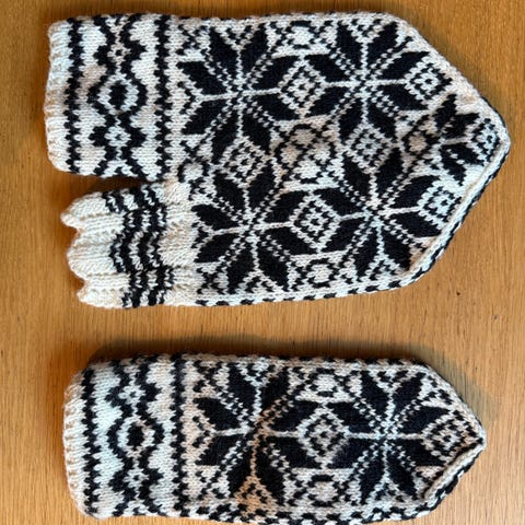 Selger disse vottene kjøpt på husfliden.