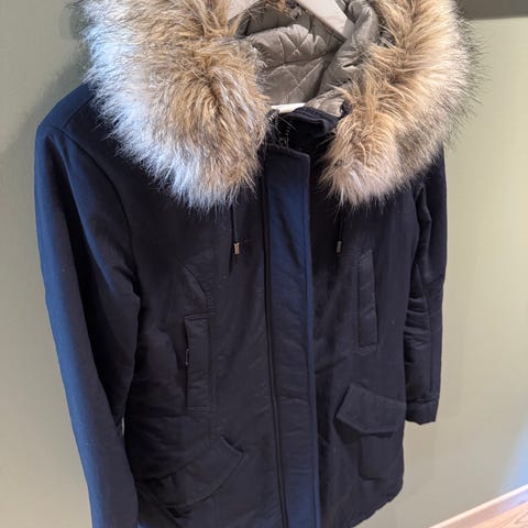 Jeg selger min pent brukte mørk blå Woolrich-jakke i str XS. Den er utrolig god og varm og tåler godt snø/vann, og har en utrolig fin passform. Ny pris på denne jakken var ca. 6700,-. Selges billig da den er litt falmet på skulderen