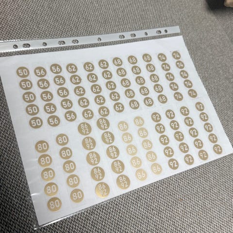 Størrelsesmerker vinyl, festes på stoff med strykejern