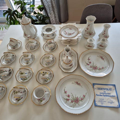 Svaneholm 1530 FLORES VERNI kaffekanne, fløtemugge, sukkerskål og fat selges