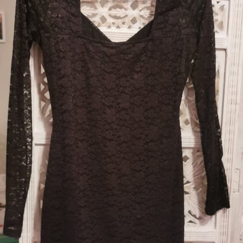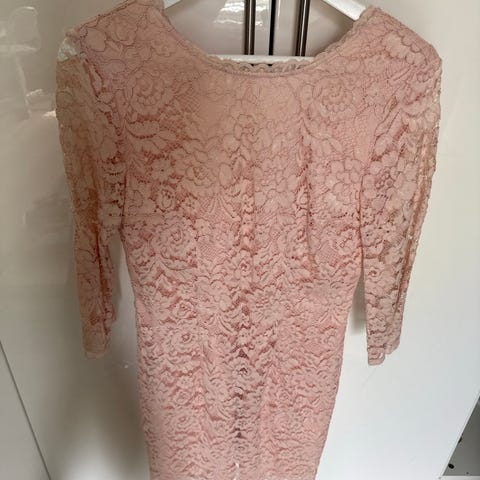 Ny, elegant kjole i nydelige blonder. Kjolen har en flatterende smal passform, med transparente ermer.