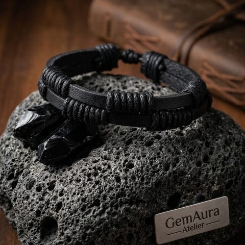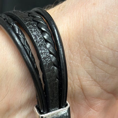 *Nytt* Armbånd/dobbelt i sort lær m/øreringer fra IKÏ