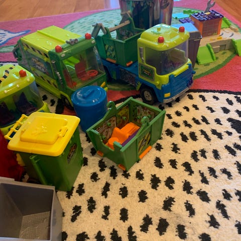 Trash pack pakke med kjøretøy, figurer og søppelkasser