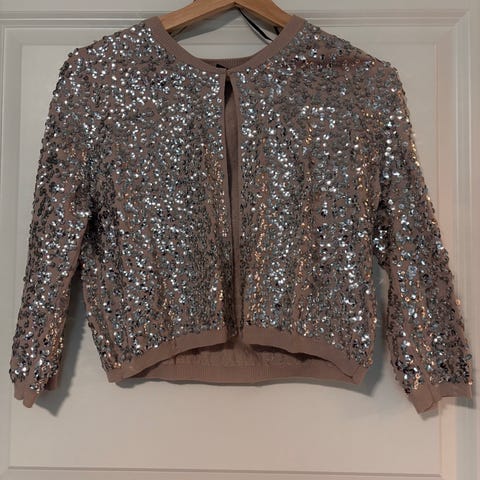 Jakke sølv med glitter, str.:L, pris.:50kr Tel.:98037073