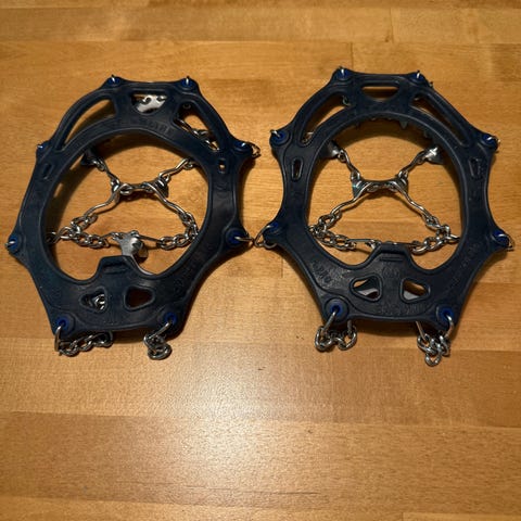 Videreutviklet modell av Pro-modellen, med seks ekstra pigger på tåpartiet for ekstra grep i bratt terreng. Enkle å ta av og på. Like gode på snø som is.