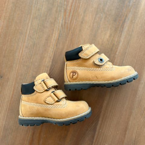 Ubrukte barnesko i skinn i str 20 selges for kr 100,- Skoene er italienske i merket Bubina / Bambina. Sålene er av gummi.
