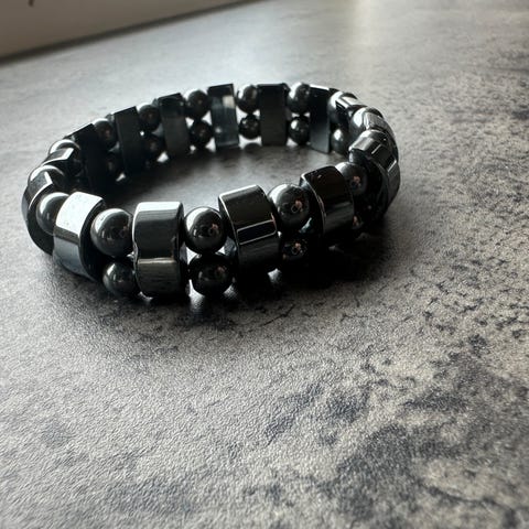 Selger et helt nytt hematitt armbånd. Størrelse er 17-18 cm.