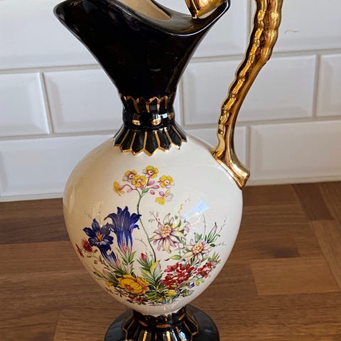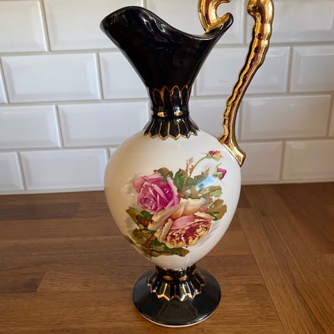 Håndmalt vintage vase selges av Hubert Bequet. Har arvet denne av min oldemor. Det ligger en annen vase ute på Finn.no med nummer 317. Denne har nummer 315.