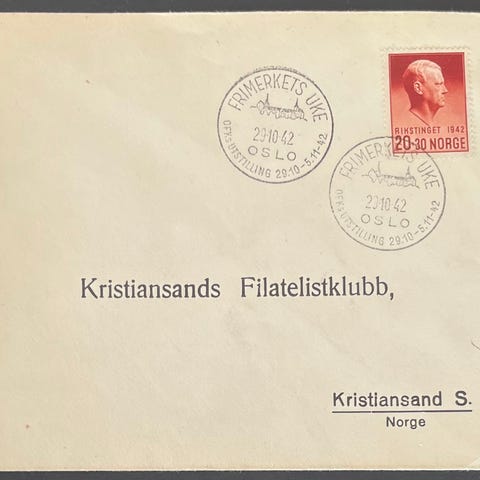 Liten folder i format 10,5x22 cm, fra den gang riksportoen var 25 øre og lokalporto 15 øre. Folderen er nesten som ny, men med navn i øverste kant. Porto kommer i tillegg.