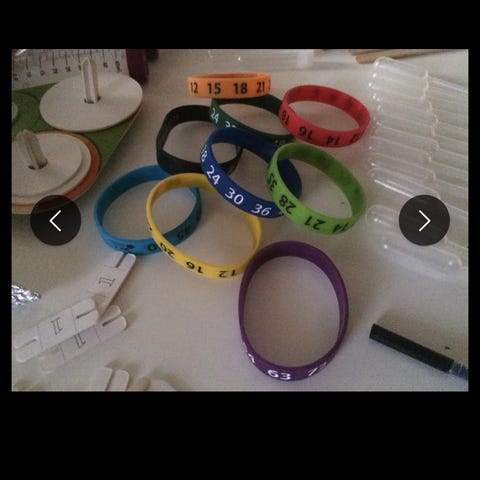 Gangetabellen Armebånd byggeklosser pipetter briller osv labbfrakk 250kr
